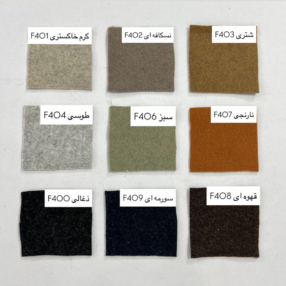 خردلی B8 ,قهوه ای B5 ,کاراملی B7 ,کرم تیره B2 ,کرم روشن B1 ,مشکی B18 |
